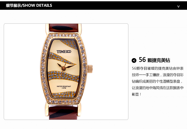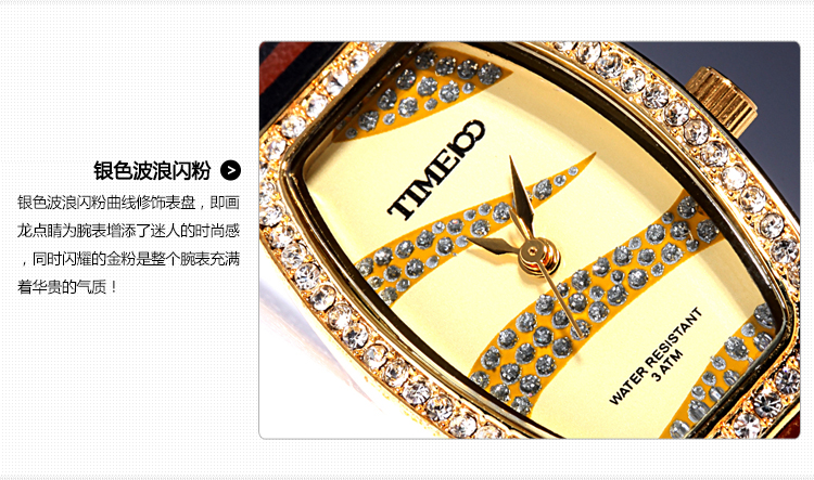 这款手表,我选择的是黑白豹纹哦,实物和店家图片没有差别的。特爱那一圈显亮的水钻,超美。优雅时尚,很显气质哦。各种场合都很适合,隆重场合...