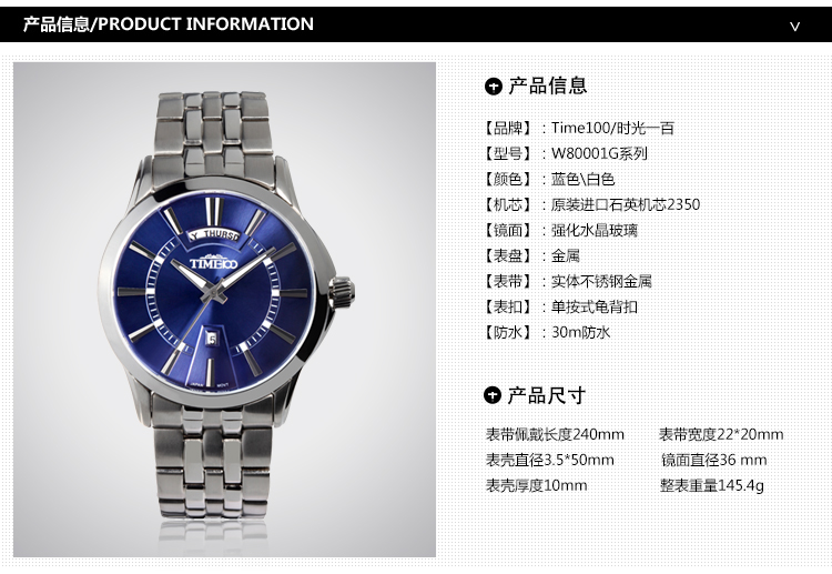 3. 所售手表提供手表免费保修机芯提供一年免费保修服务,镜面、表带以及其他易耗易划伤的零售配件,确认完好签收后不属于免费保修范围。
