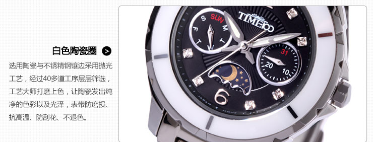 陶瓷圈日月相多功能女士手表 全国包邮(只包圆通和申通快递),钢带表免费赠送拆带器。