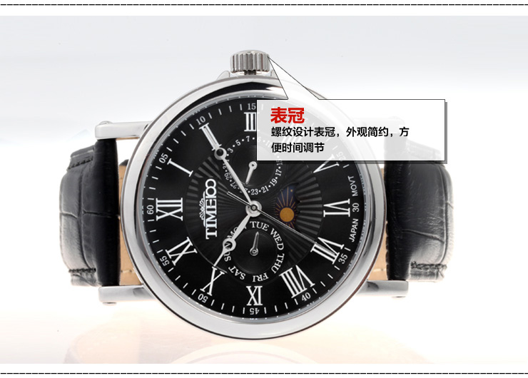 4.腕表把的平时应保持锁紧(琐式表冠)或完全推入(压式表冠)状态,使能确保防水功能。