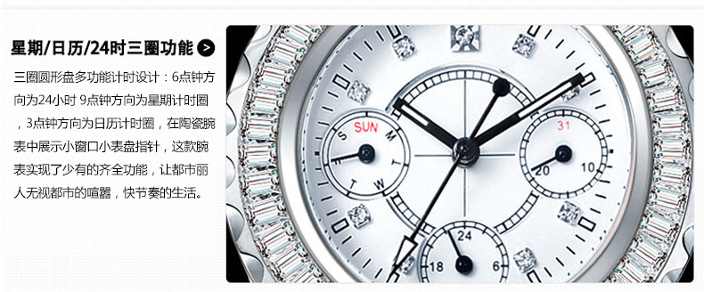 时尚陶瓷多功能女表 (全国包邮)