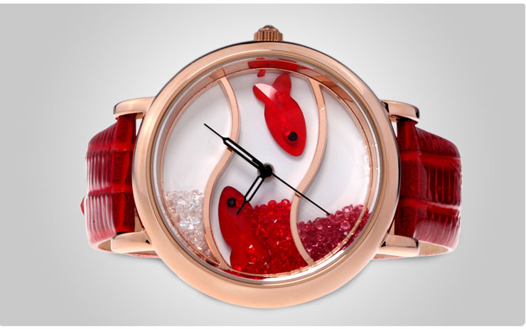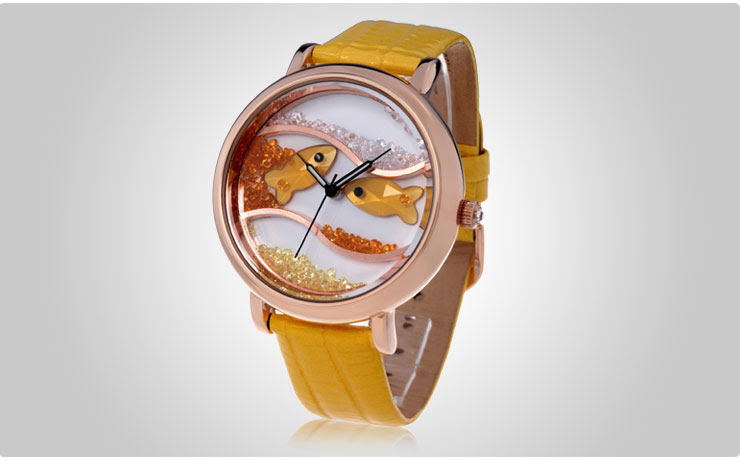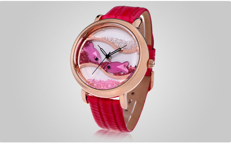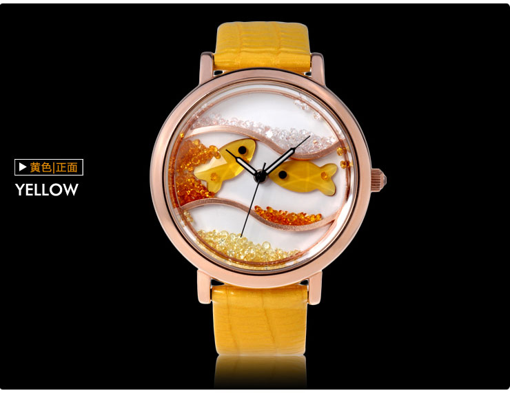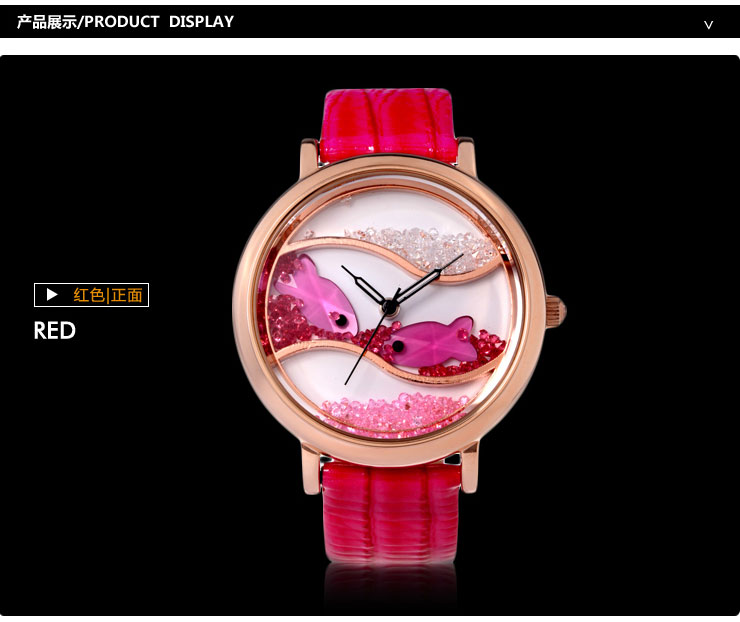 闪钻海洋水晶鱼真皮防水表 (全国包邮)