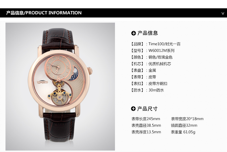 当前位置:首页 > 时光一百 太极飞轮月相镂空皮带机械表W60012M