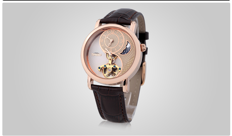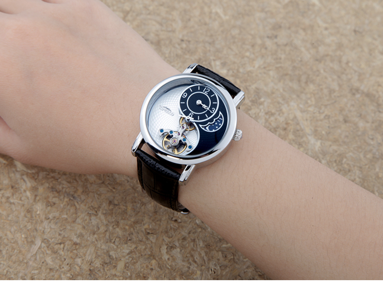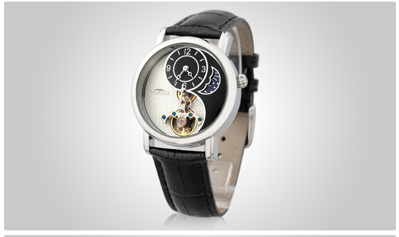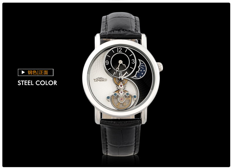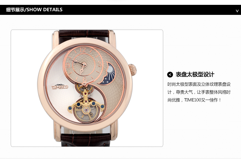 时光一百 太极飞轮月相镂空皮带机械表