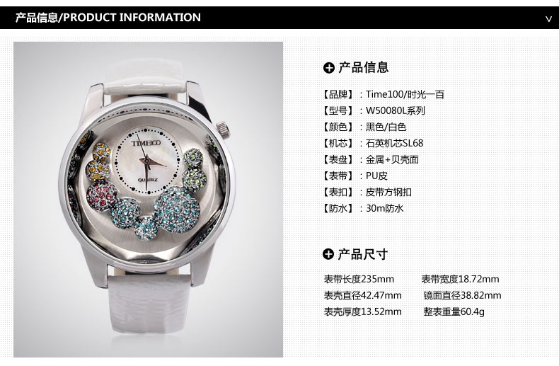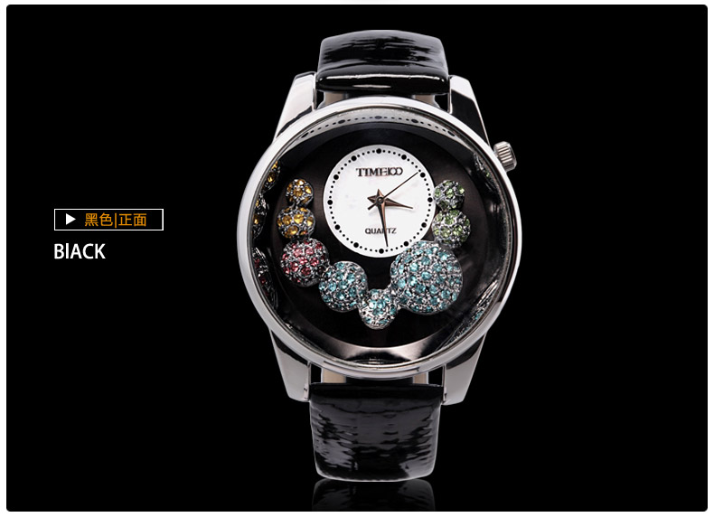 时光一百Smileyes系列 多面闪钻细皮带石英女表TSW015L