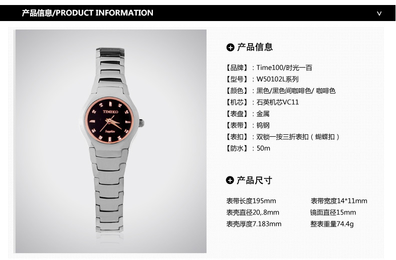 当前位置:首页 > 时尚圆形正品钨钢女士手表防水石英表W50102L