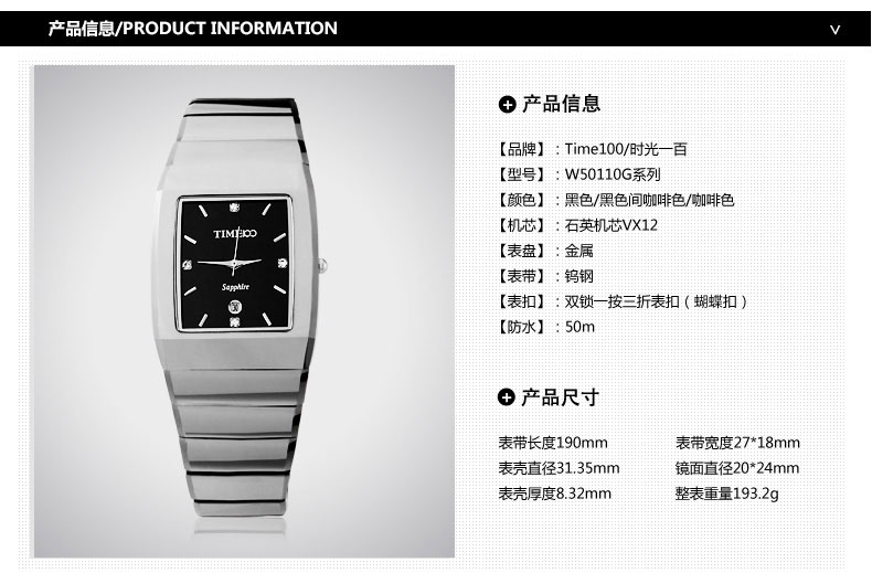 当前位置:首页 > 时尚方形正品钨钢男士手表防水石英表W50110G