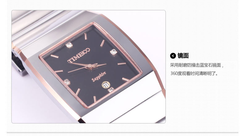 时尚方形正品钨钢男士手表防水石英表 全国包邮