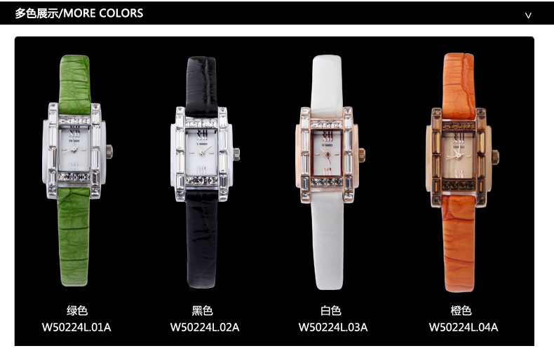 当前位置:首页 > 时尚优雅方形真皮镶钻罗马刻度石英女表W50224L