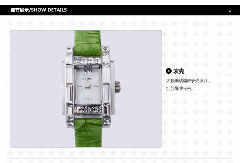 时尚优雅方形真皮镶钻罗马刻度石英女表 全国包邮