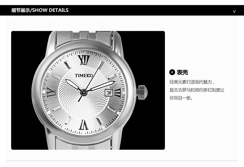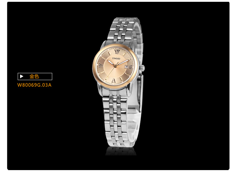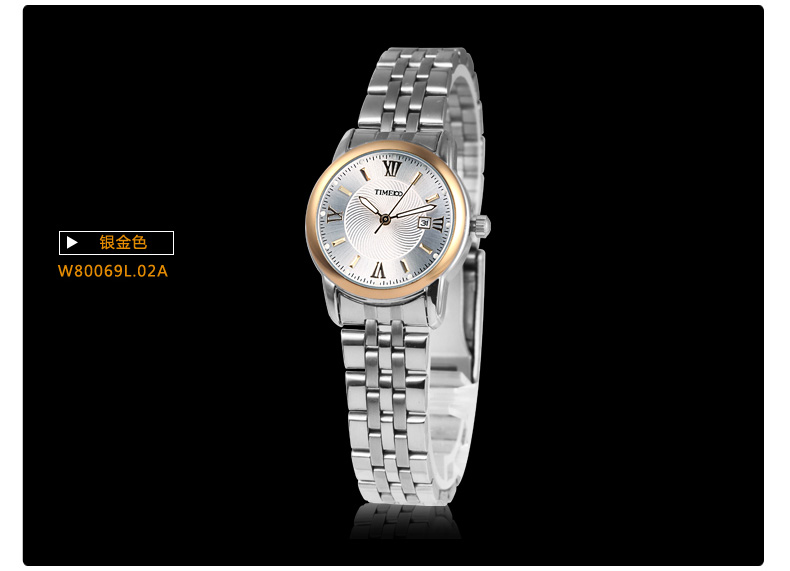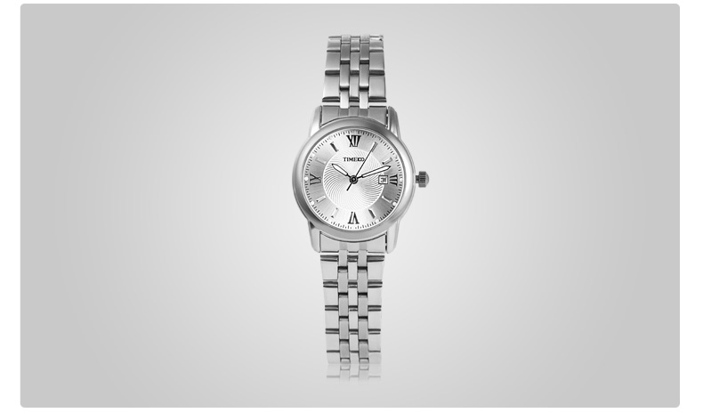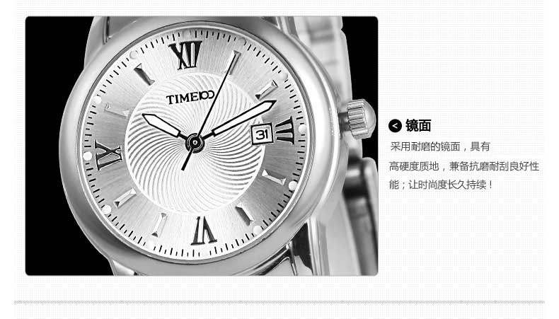 TIME100时光一百 简约复古罗马刻度日历钢带情侣女表 全国包邮