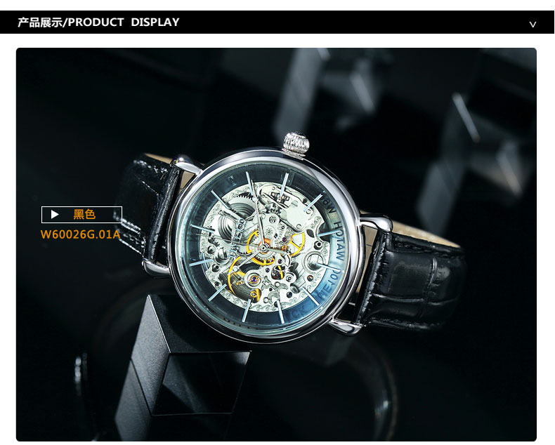 镂空自动机械表W60169G钢色黑带