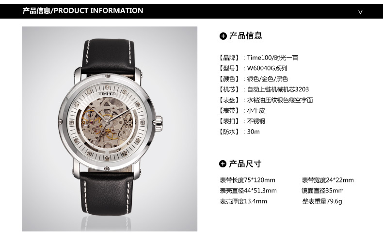 当前位置:首页 > 精致镂空真皮机械表男表W60040G