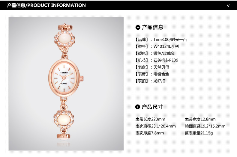 时尚椭圆形闪钻手链女表W50170L间玫瑰金
