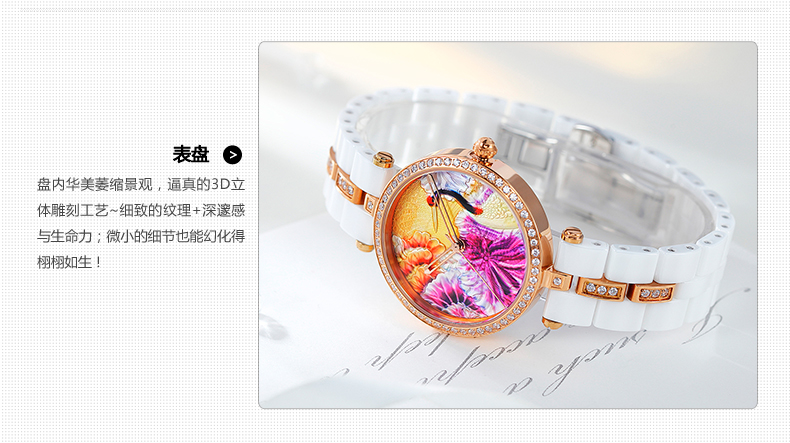 时尚灵动立体雕花珐琅陶瓷女士腕表 (全国包邮)