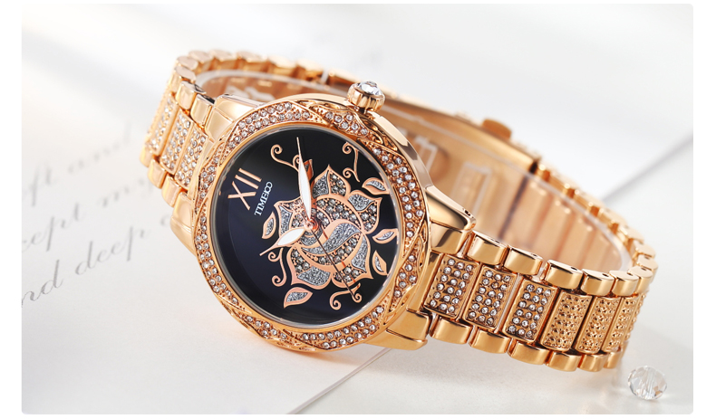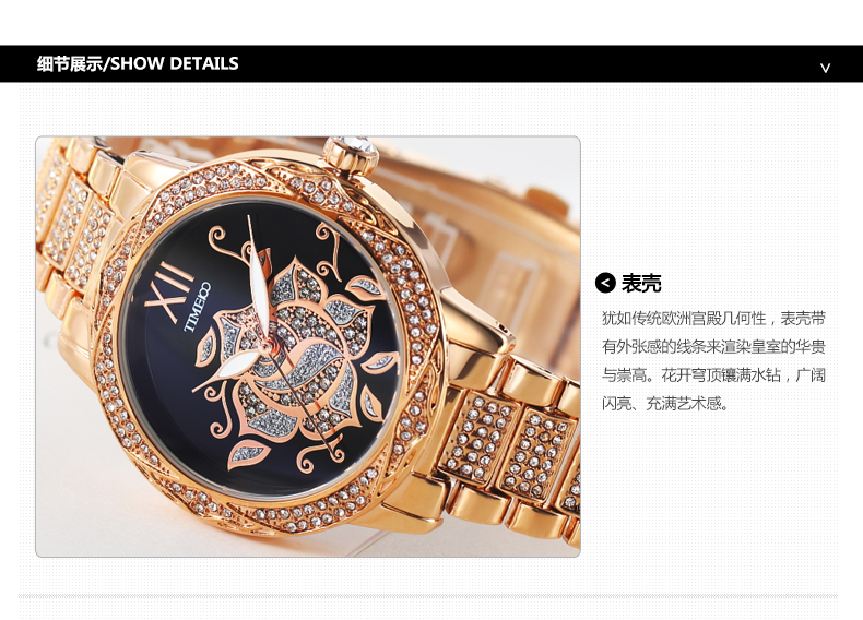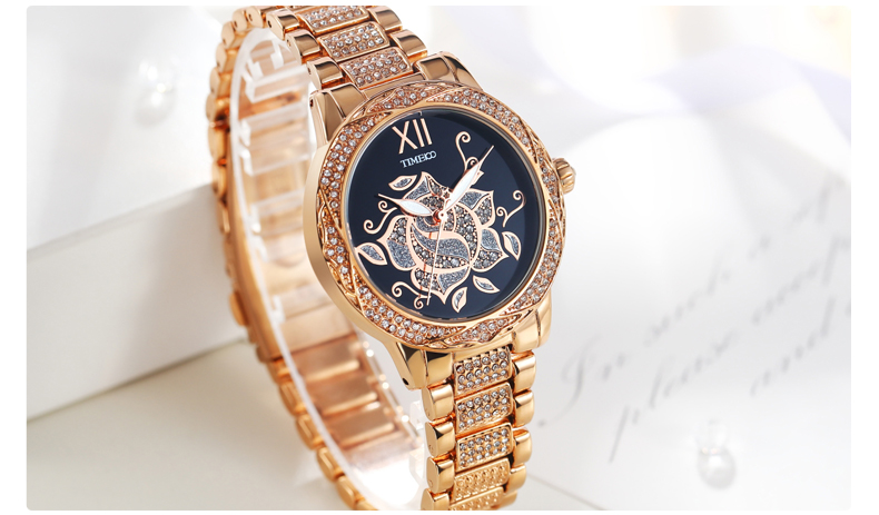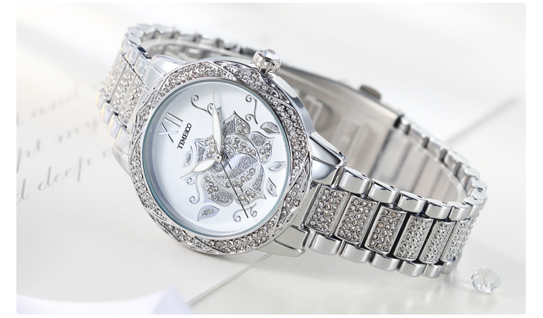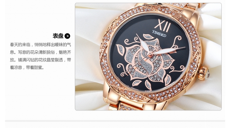 甜美个性写意亮钻花朵女士腕表