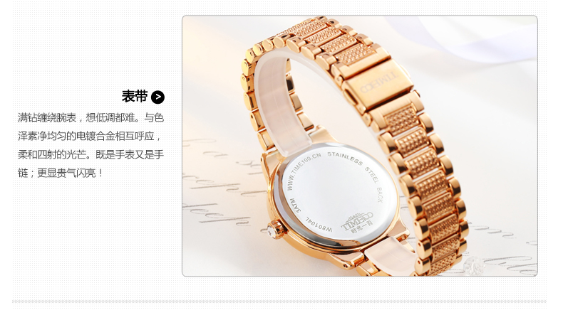 时尚椭圆形闪钻手链女表W50170L间玫瑰金