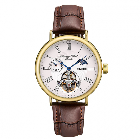 TIME100凌空系列时尚全景镂空机械表增强夜光陀轮男士复古腕表W60165G