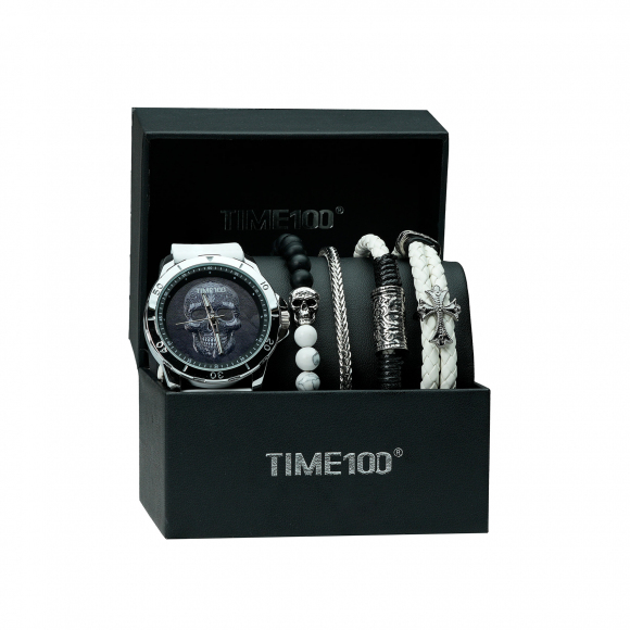 时光一百(TIME100)女表小表盘简约防水女士腕表套装女手链手表七夕礼物送女友W50888L钢色