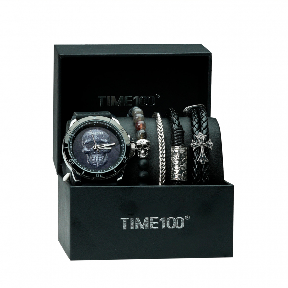时光一百(TIME100)女表小表盘简约防水女士腕表套装女手链手表七夕礼物送女友W50888L钢色